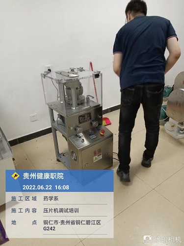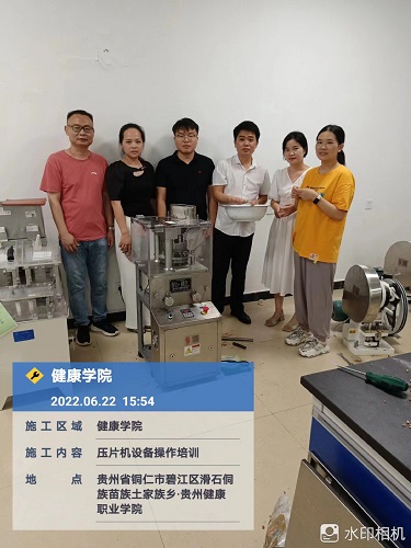 2022年6月22日,我廠銷售部李經(jīng)理及技術(shù)人員王工前往貴州健康職業(yè)學院對購置的旋轉(zhuǎn)式壓片機、單沖壓片機進行安裝調(diào)試,并就設備的使用對學院老師進行培訓。